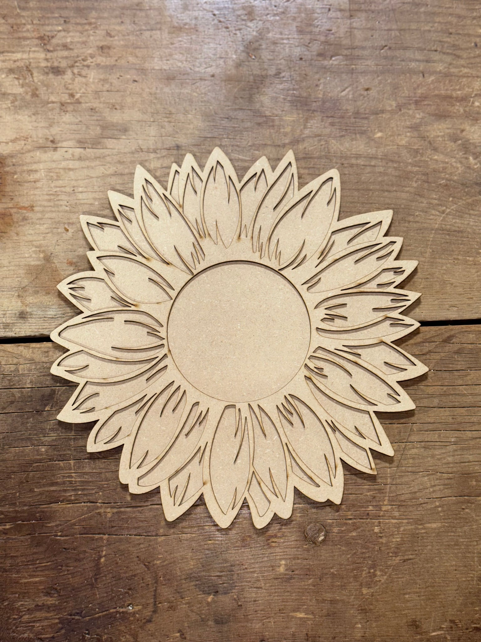 Please note: This is unfinished MDF. Please do not store outdoors or in the direct elements. Please understand that these are cut by a laser, and as such, they will have a laser-burned edge and may have a slight odor that will dissipate over time.